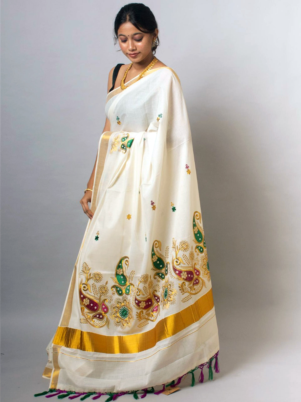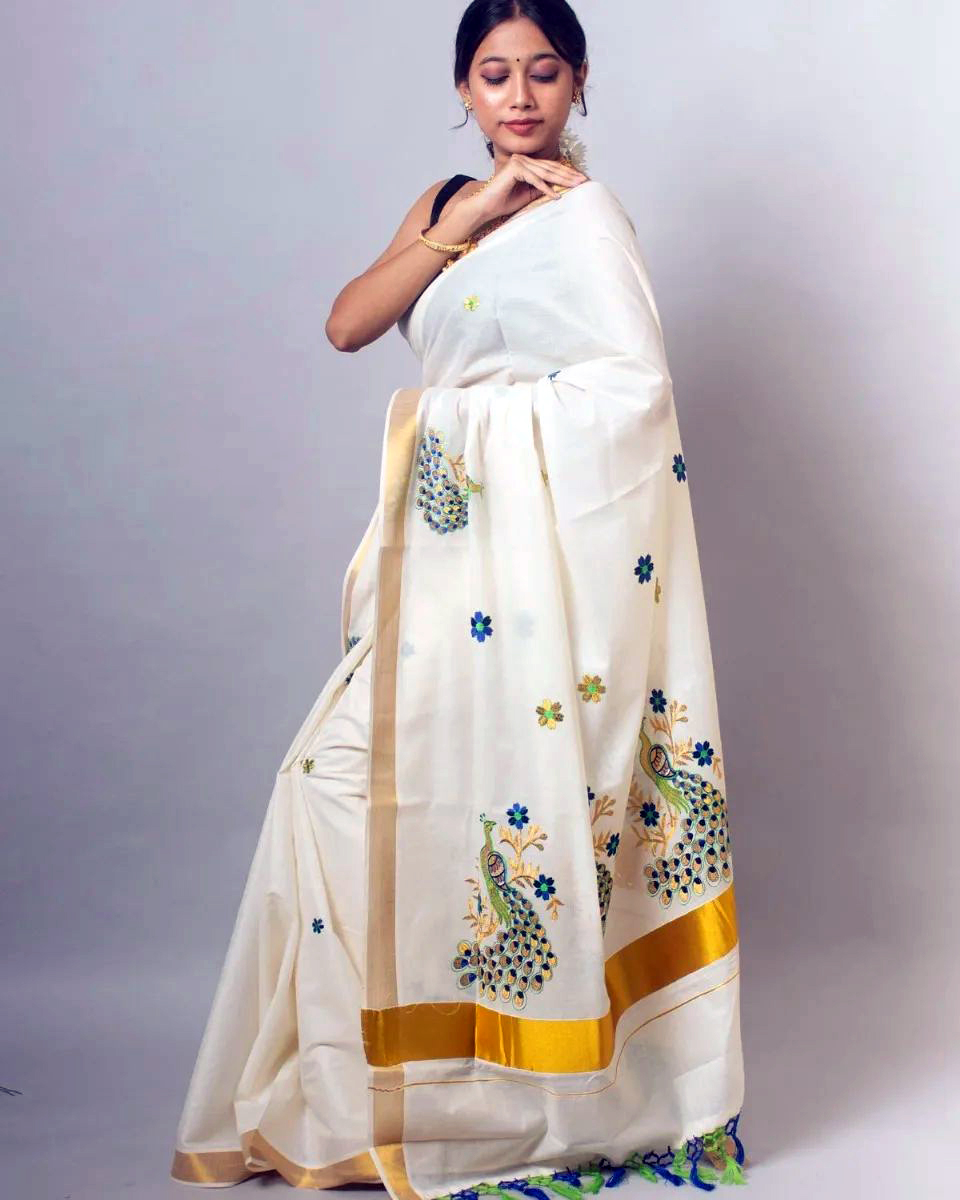 Kerala Cotton Embroidered Saree